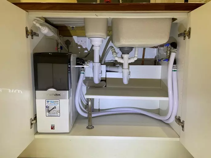 This Quooker Pro 3 with Minimax Water Softener was installed into a park home near Bromley. Our client called us and initially to just enquire about a water softener and during our conversation she happened to mention how much she admired a close friend's boiling water Quooker tap. The moment we got onto the conversation of the boiling tap, it became clear to me that this was her real passion. Using the Quooker Augmented Reality App, we had a great fun selecting the right time for her home in a 3-D holographic form, after which it was just a case of coming up with a easy payment plan for her, and hey presto, a week later everything was installed. The Minimax not only protects the Quooker from the damaging effects of hard water scale, but also gives the most luxurious softened water throughout the home.